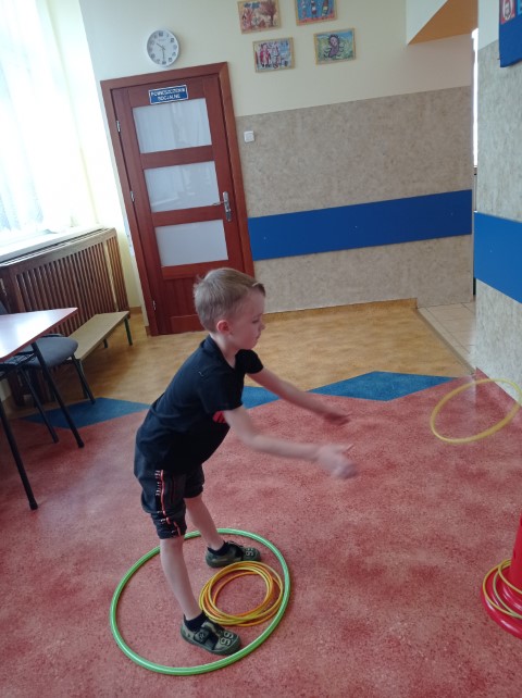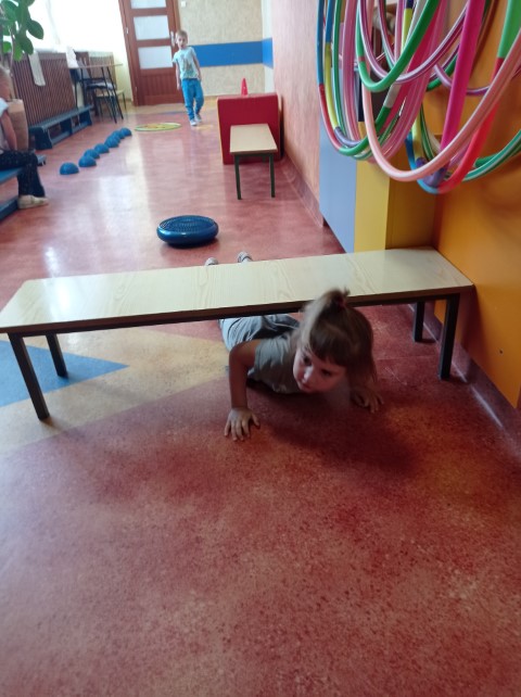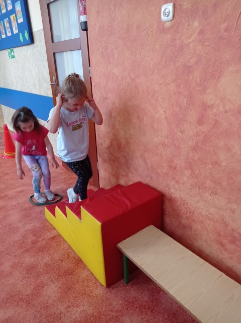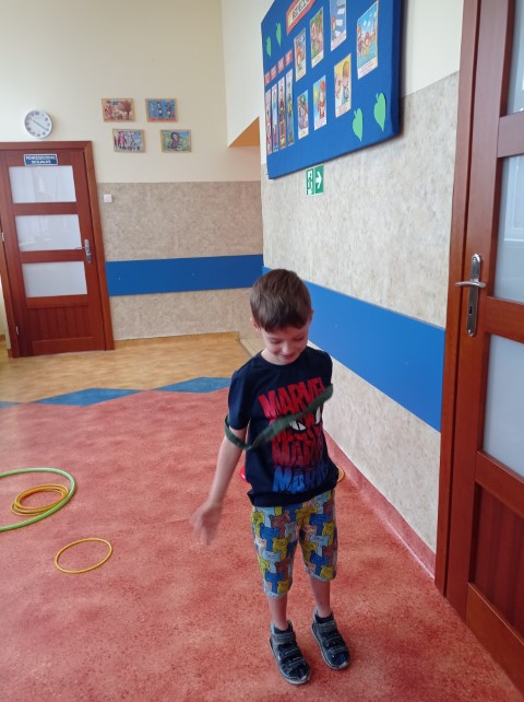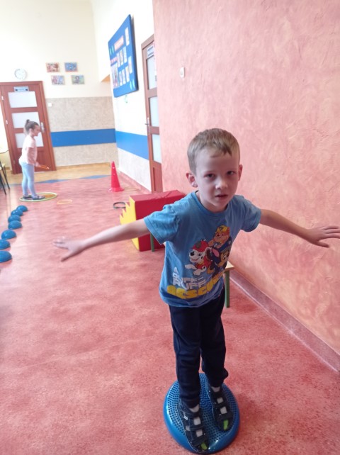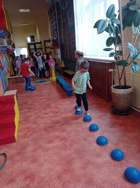 Czwartek, 2 czerwca to kolejny dzień (po festynie i Dniu Dziecka) przynoszący ciekawe propozycje zabaw dla dzieci. Tym razem , z okazji Dnia Sportu pan, prowadzący gimnastykę korekcyjną przygotował ciekawe zajęcia dla dzieci. Grupy, podzielone na dwa zespoły miały za zadanie pokonać tor przeszkód a także pod czujnym okiem instruktora wykonać różne zadania i ćwiczenia gimnastyczne.