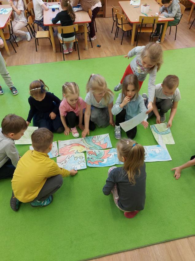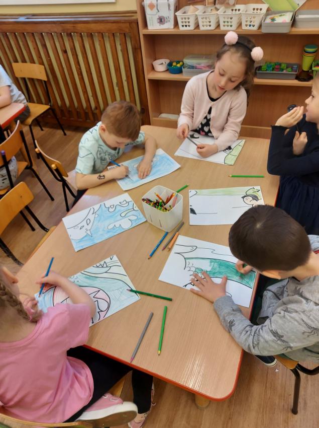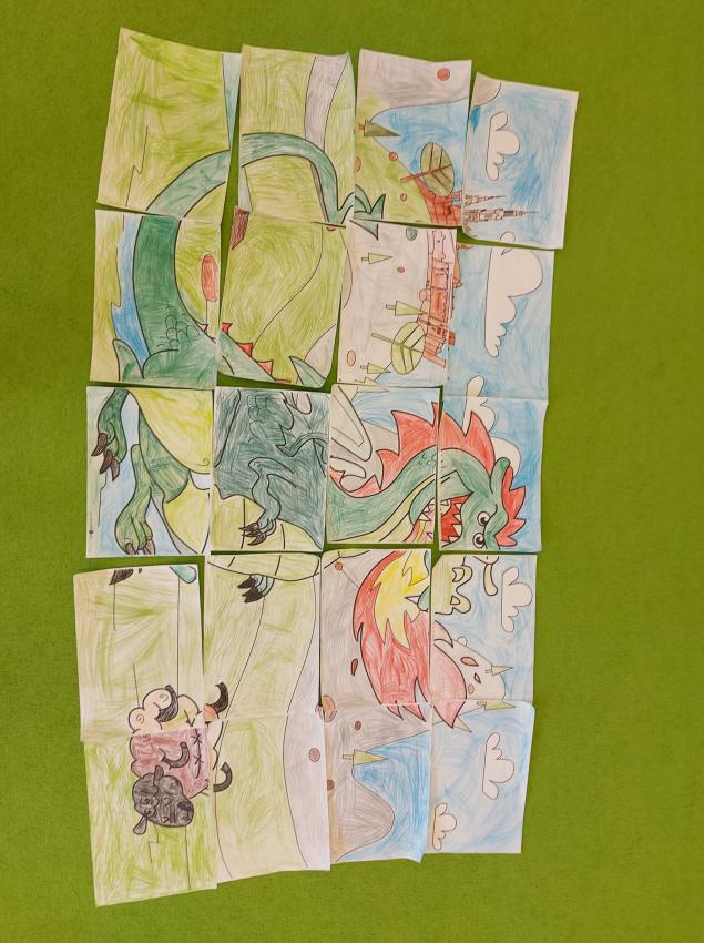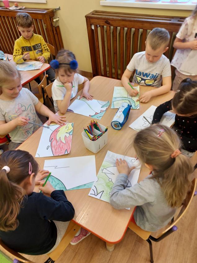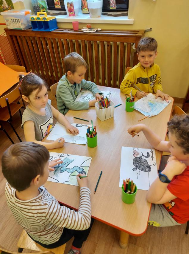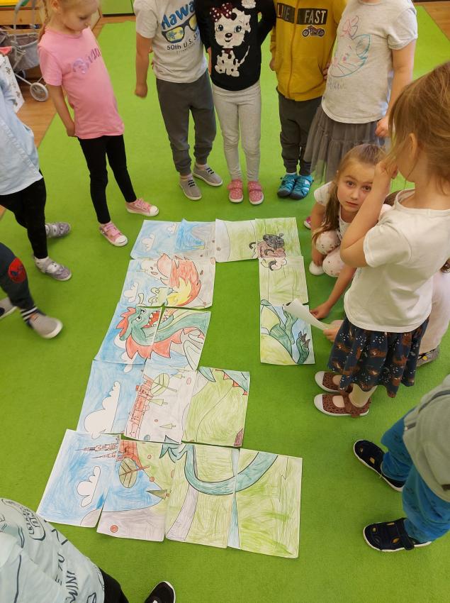 2022-05-19 Jeżyki tworzą ilustrację do Legendy o Smoku Wawelskim