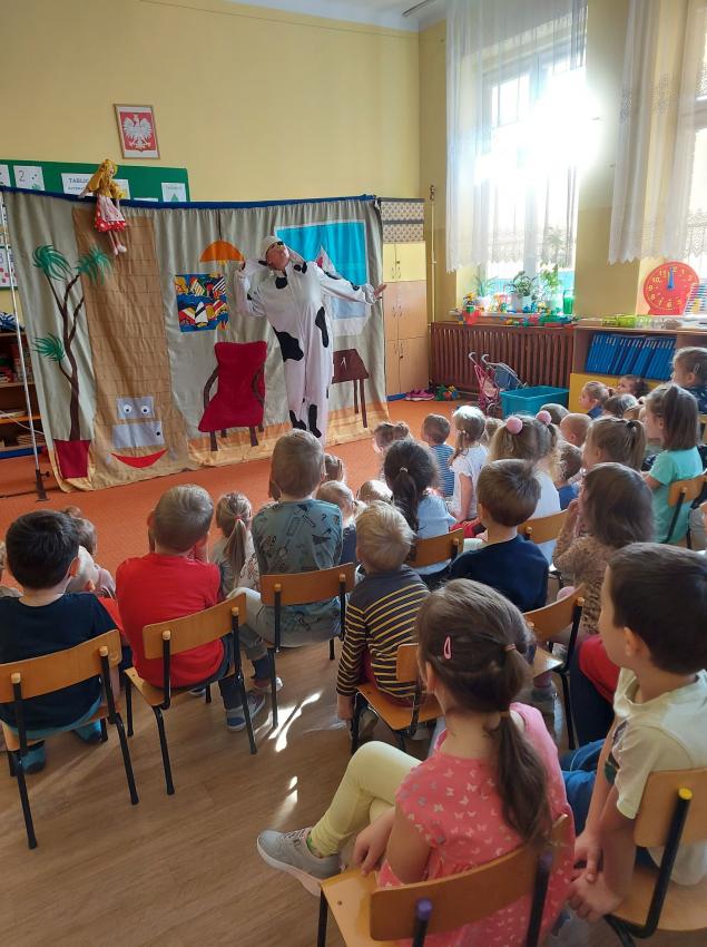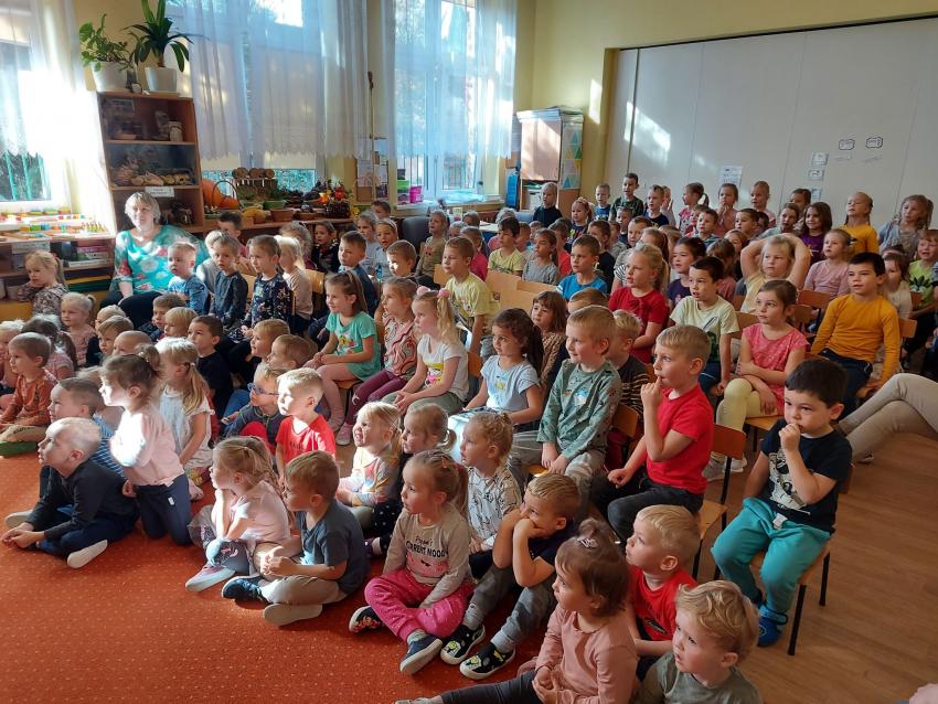 2022-10-17 Przedszkolaki oglądają teatrzyk "Cztery mile za piecem"