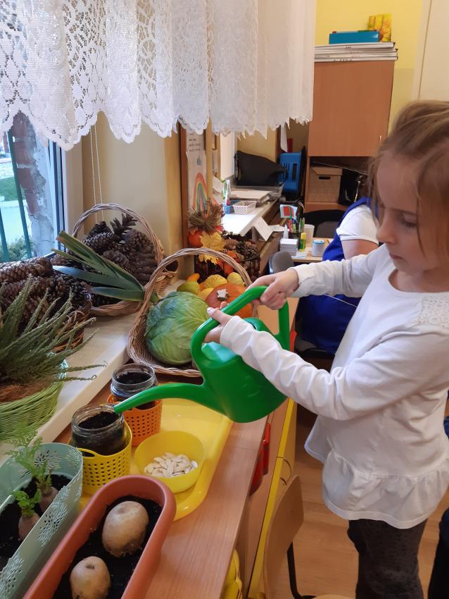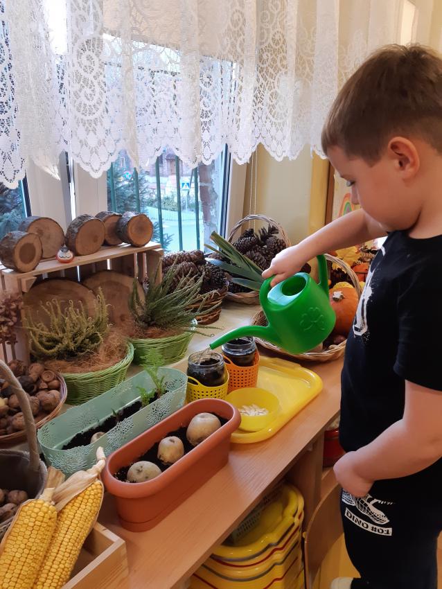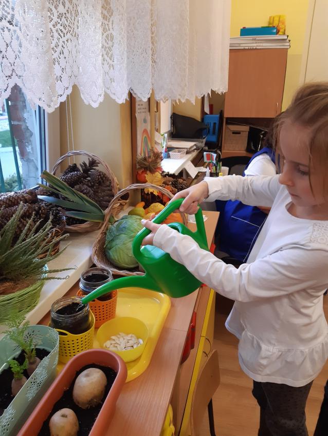 Dzieci dbają o założone hodowle .Pielęgnują i obserwują zmiany, podejmują próby wyciągania wniosków z obserwacji.