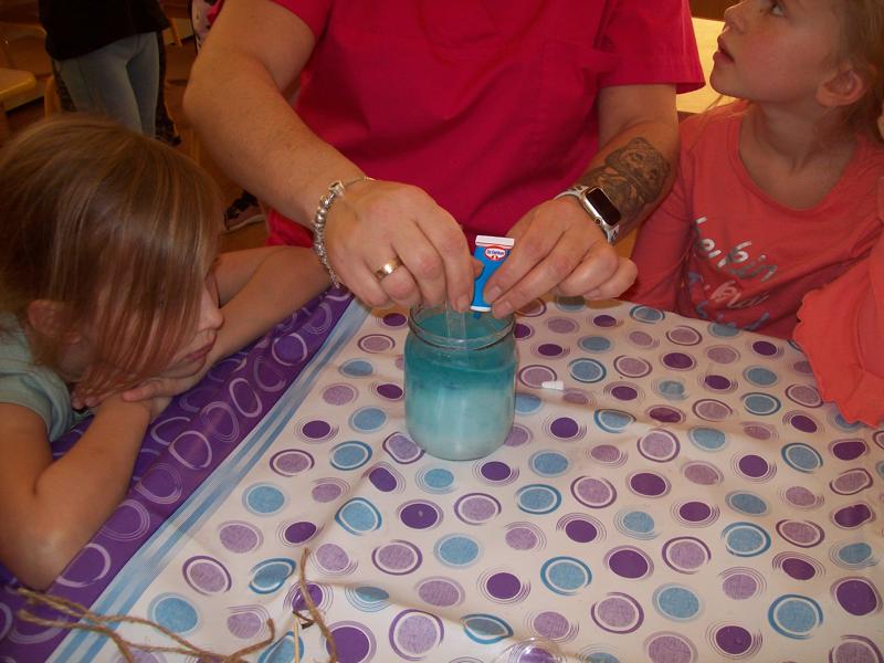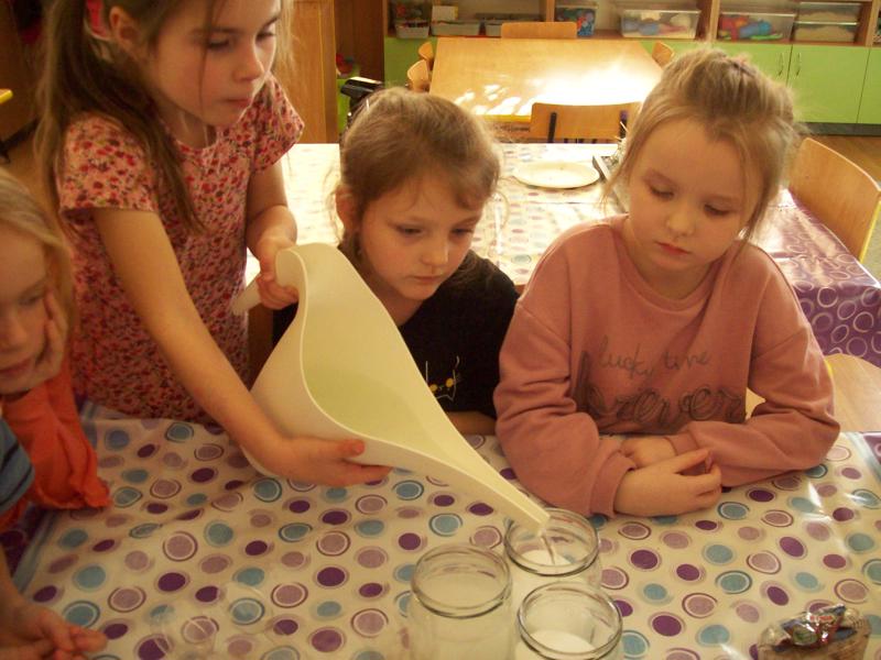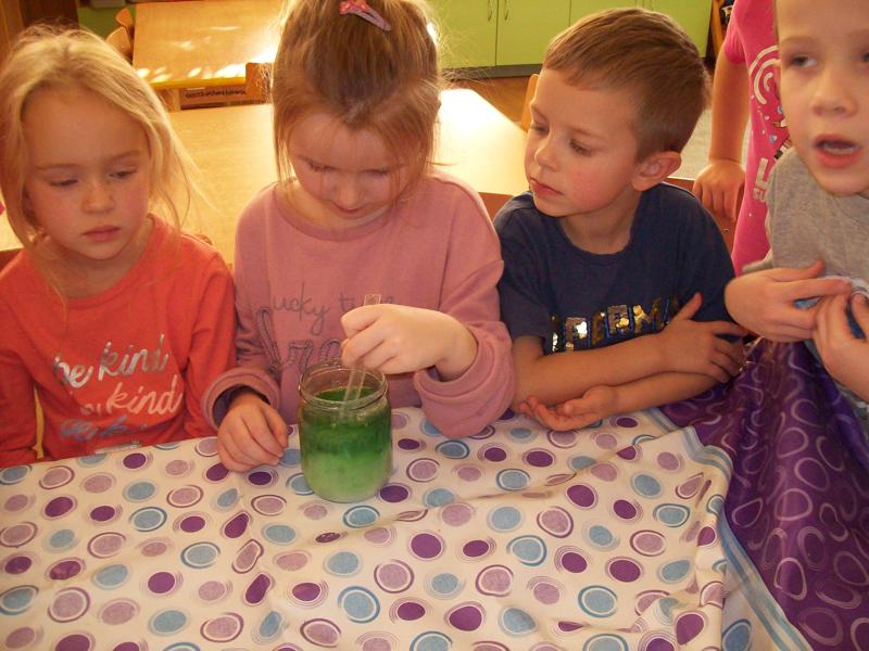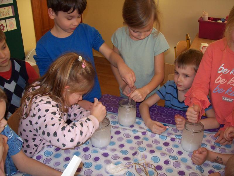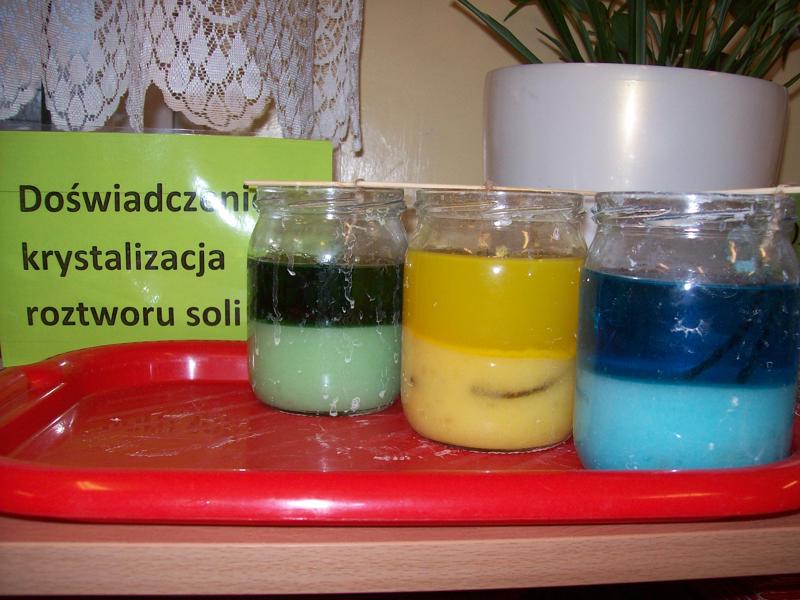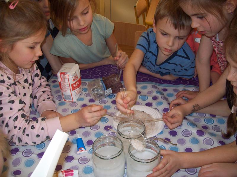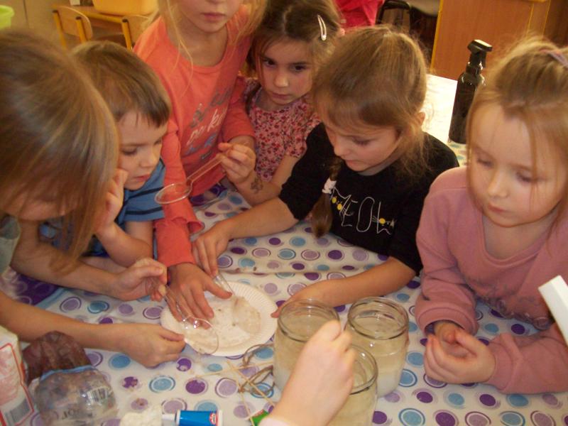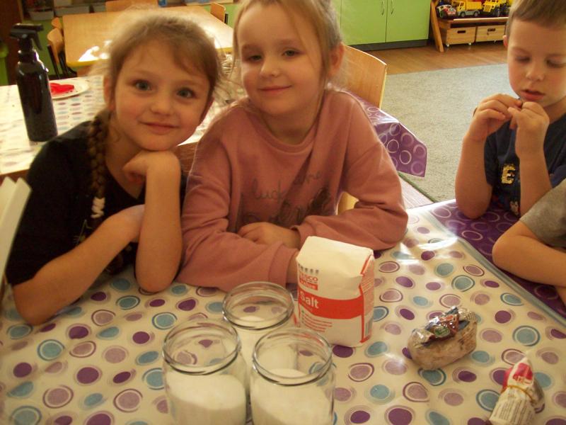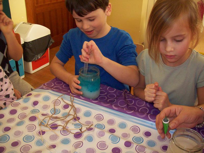 Dzieci z grupy Tygrysków założyły hodowlę kryształków soli, będą obserwowały jak krystalizuje się roztwór wodny soli.