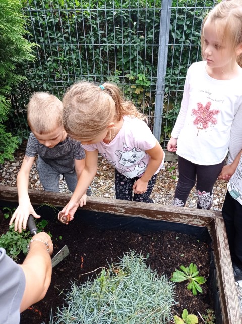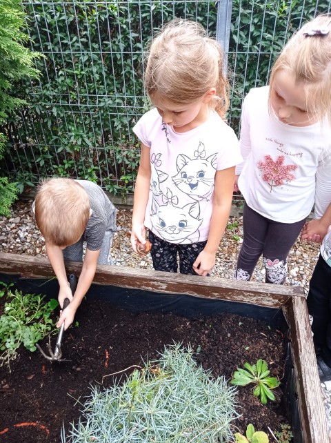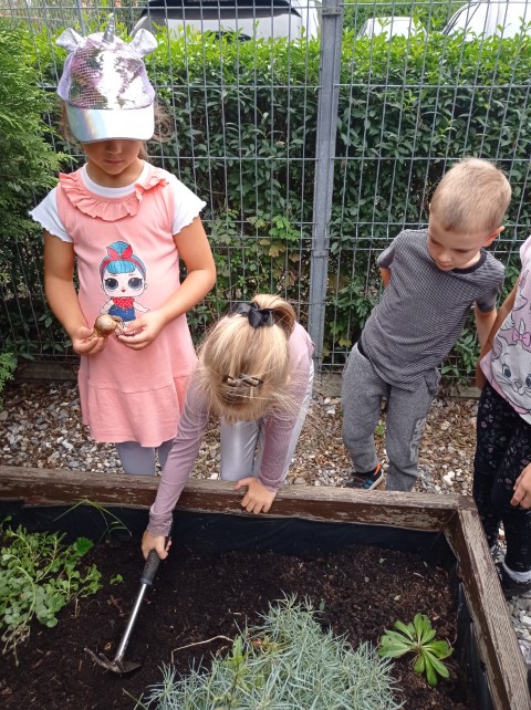 Na początku października Tygryski posadziły do grupowej skrzyni znajdującej się w naszym ogrodzie cebule wiosennych kwiatów. Abyśmy na wiosnę mogli cieszyć się z pięknych tulipanów, hiacyntów należy posadzić cebule tych kwiatów już jesienią, tak, jak zrobiły to dzieci z naszej grupy- no i czekamy do wiosny .