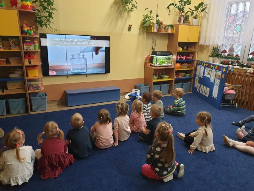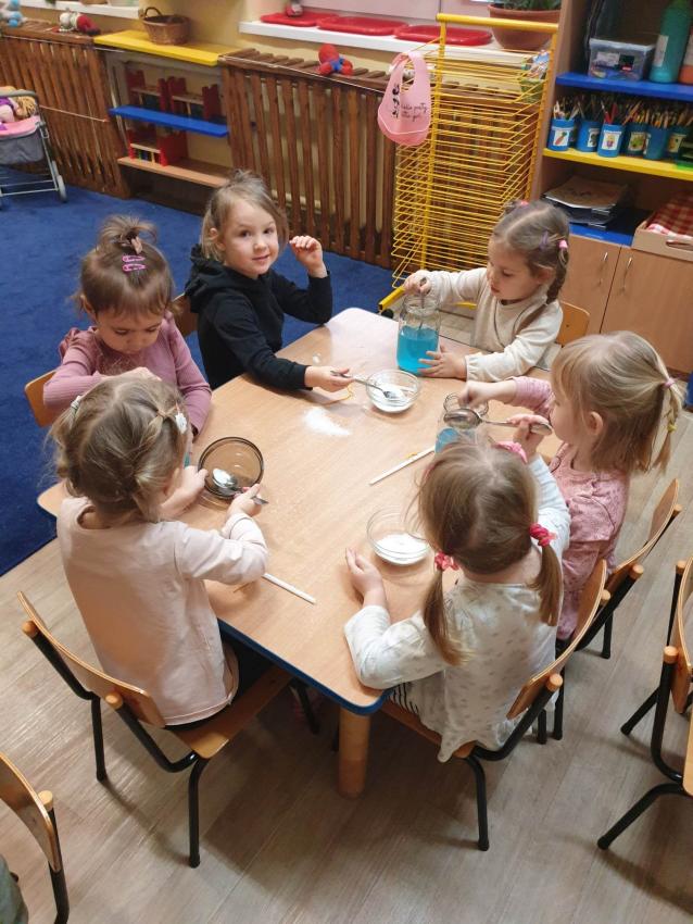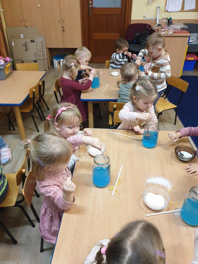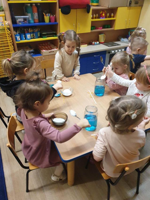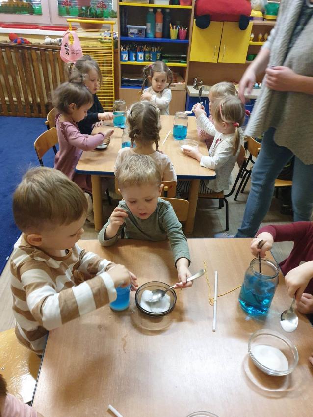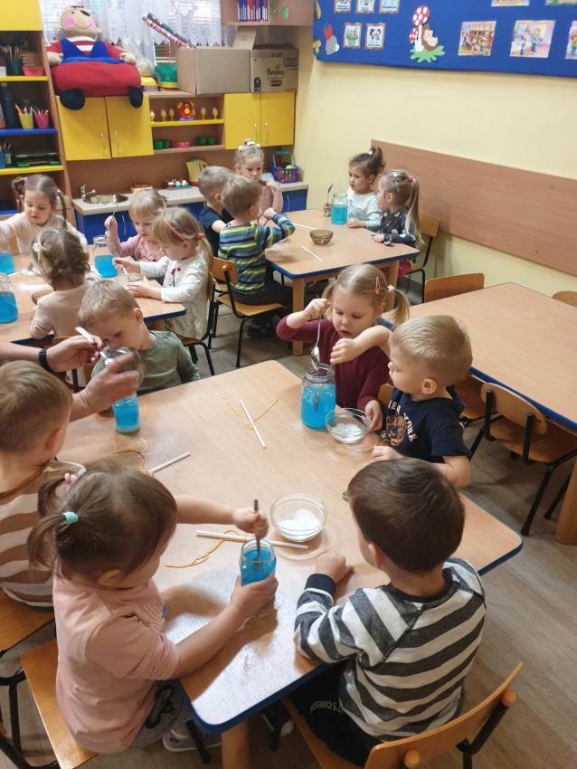 Dnia 30 listopada Motylki zapoznały się z doświadczeniem krystalizacji soli. Przy okazji eksperymentowania uczyły się również współpracy w parach. Na pewno wyhodują piękne kryształy!