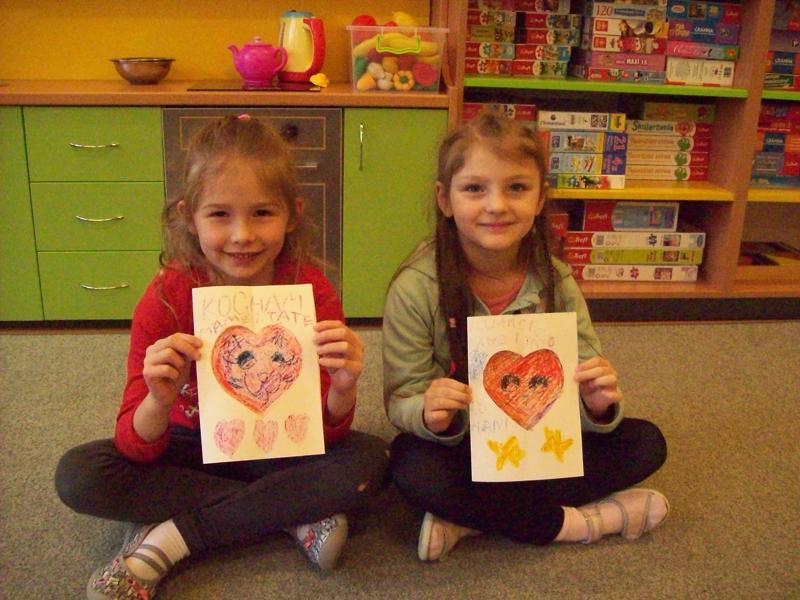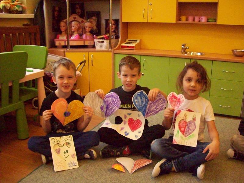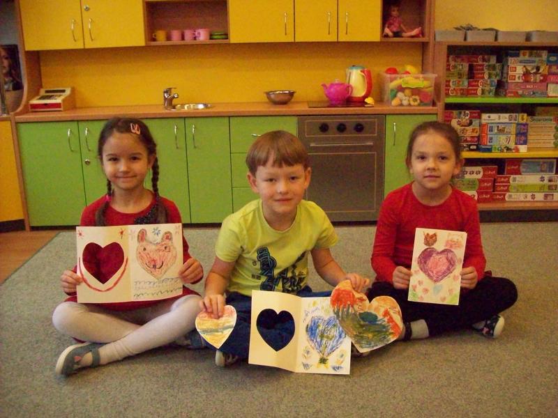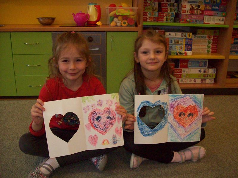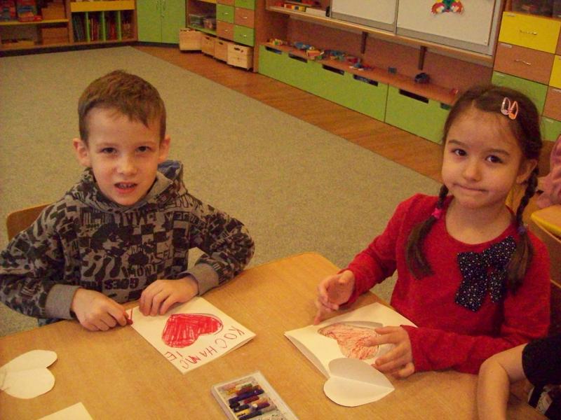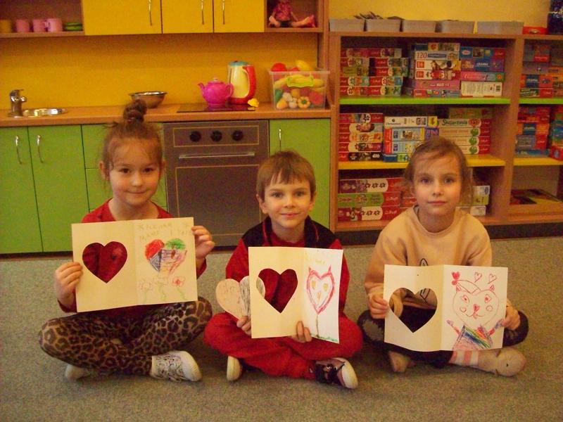 W święto zakochanych Tygryski przygotowały kartki dla osób, które kochają najbardziej. Samodzielnie napisały wyznanie: ?Kocham cię Mamo, Tato?. Miłość, miłość, miłość? życzymy jej jak najwięcej co dnia.