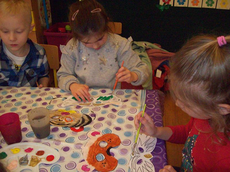 Karnawał trwa, bal karnawałowy tuż, tuż, zatem Tygryski przygotowują maski karnawałowe - samodzielnie wybierają, kolorują kredkami pastelowymi oraz farbami plakatowymi. Ćwiczymy również tańce i czekamy na bal.