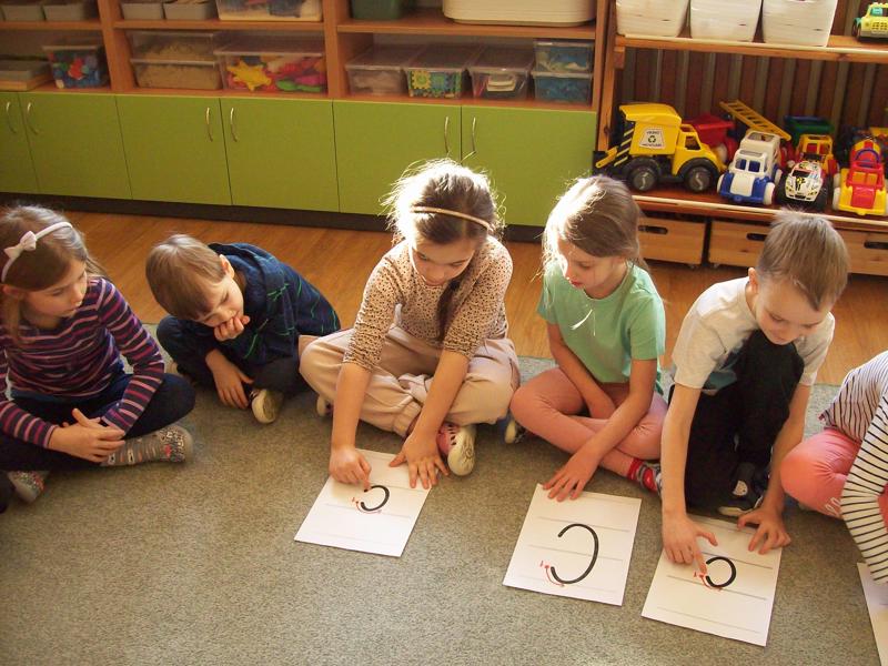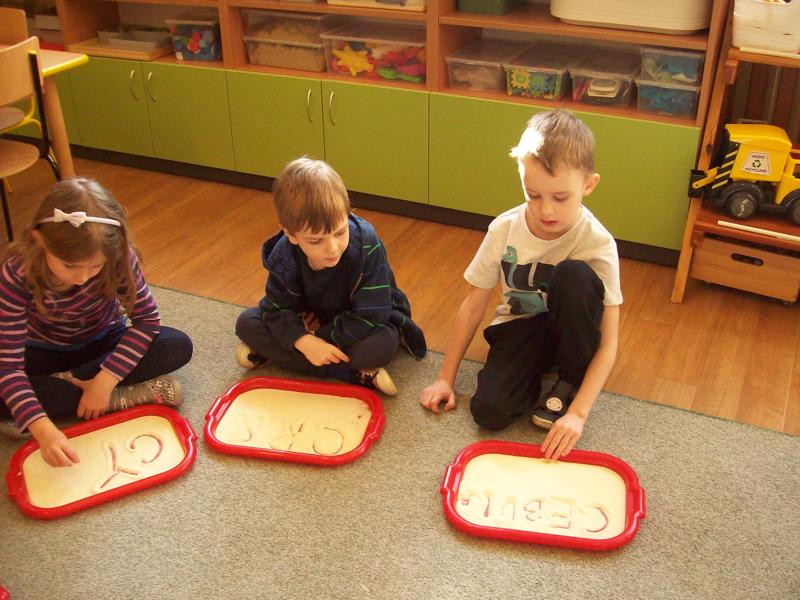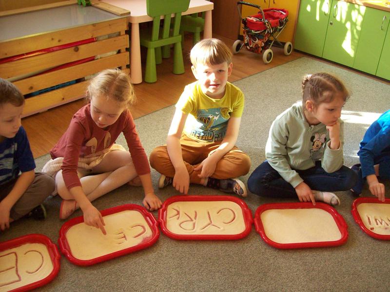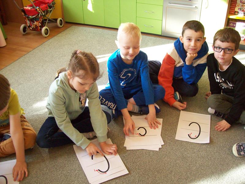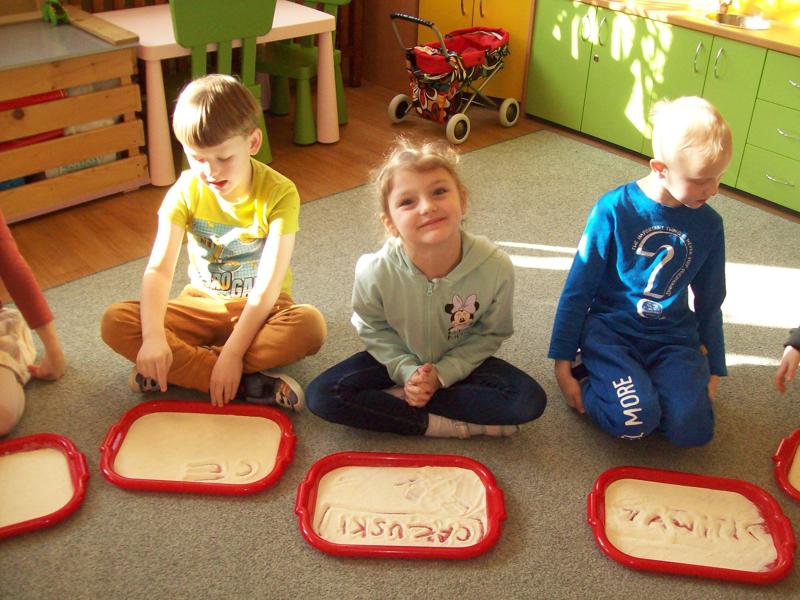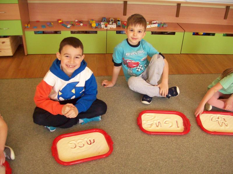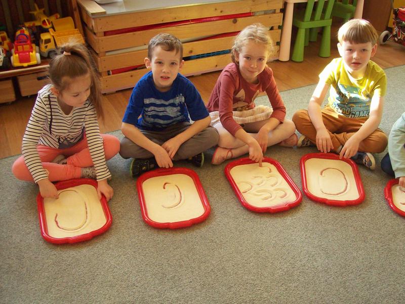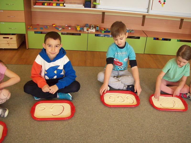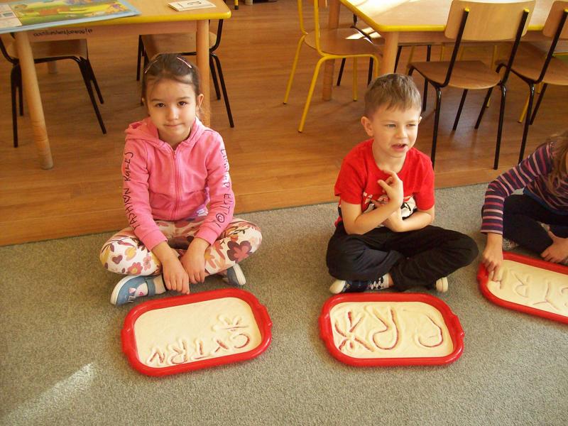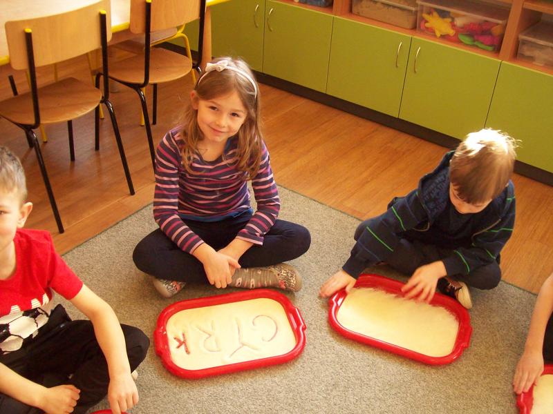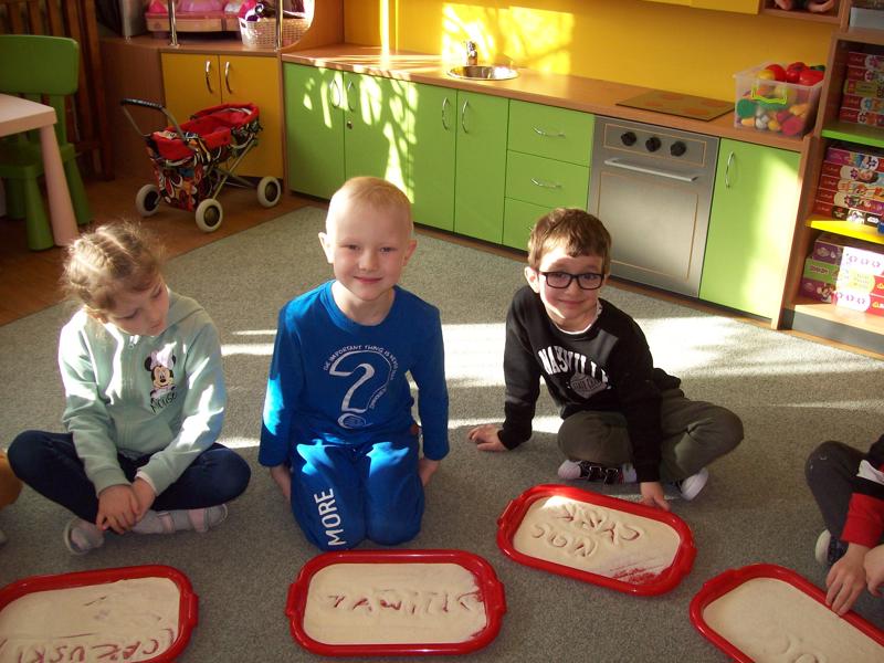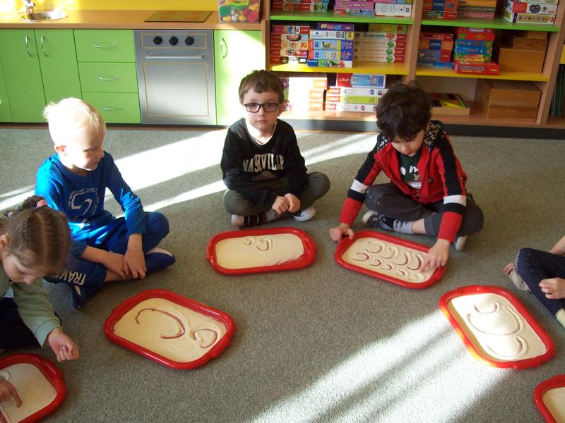 Tygryski chciały pokazać Rodzicom swoją pracę, czyli jak przygotowują się do rozpoczęcia nauki w szkole. Tutaj dokonują klasyfikacji, oznaczają ilość cyframi, poznają nową literę, rysują na tackach z kaszą manną, czytają wprowadzone wyrazy. Szykują się nam pilni uczniowie.