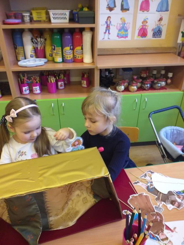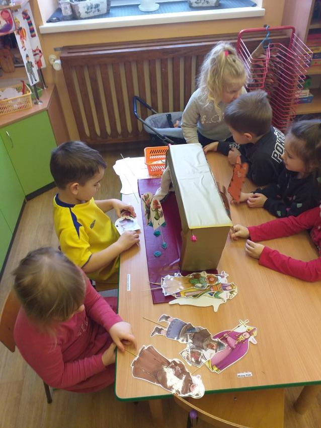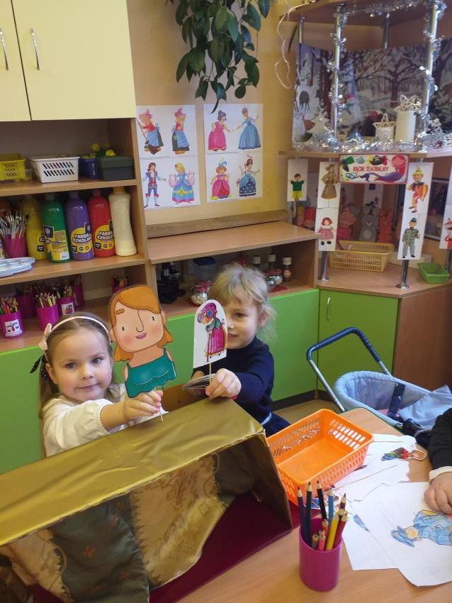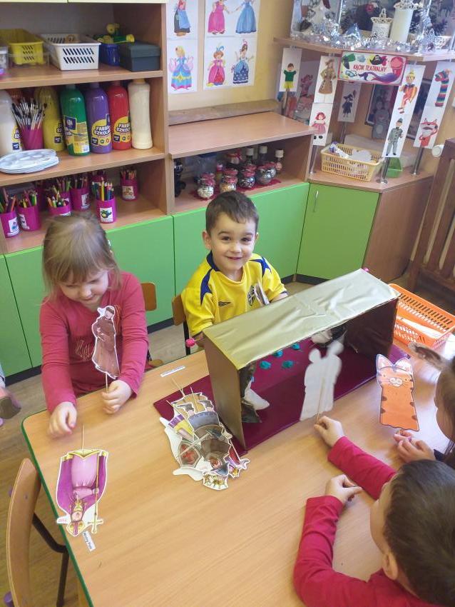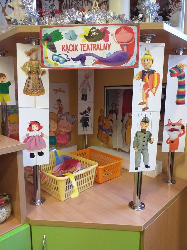 W kąciku teatralnym wcielamy się w role naszych ulubionych bohaterów z bajek rozwijając naszą wyobraźnię i pomysłowość.