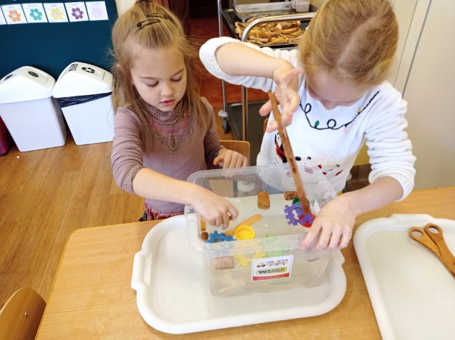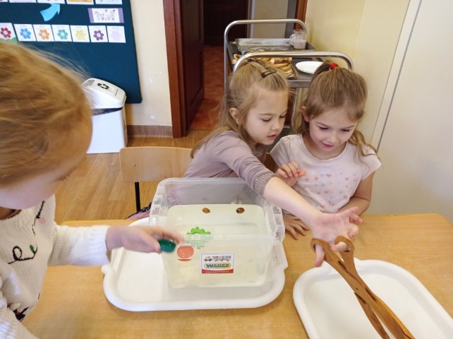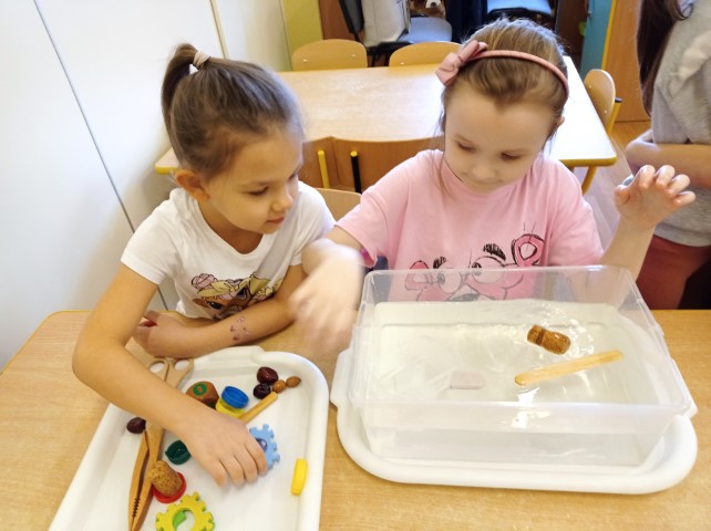 W czasie wolnym Tygryski postanowiły sprawdzić , które przedmioty pływaj , a które toną. Samodzielnie wykonywane doświadczenia były dla dzieci bardzo ciekawe i prowokowały do samodzielnego wyciągania wniosków z obserwowanych działań.
