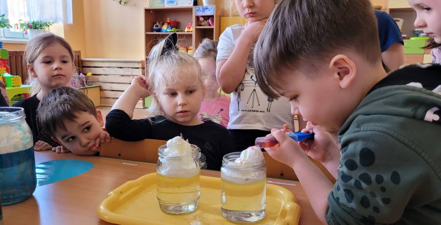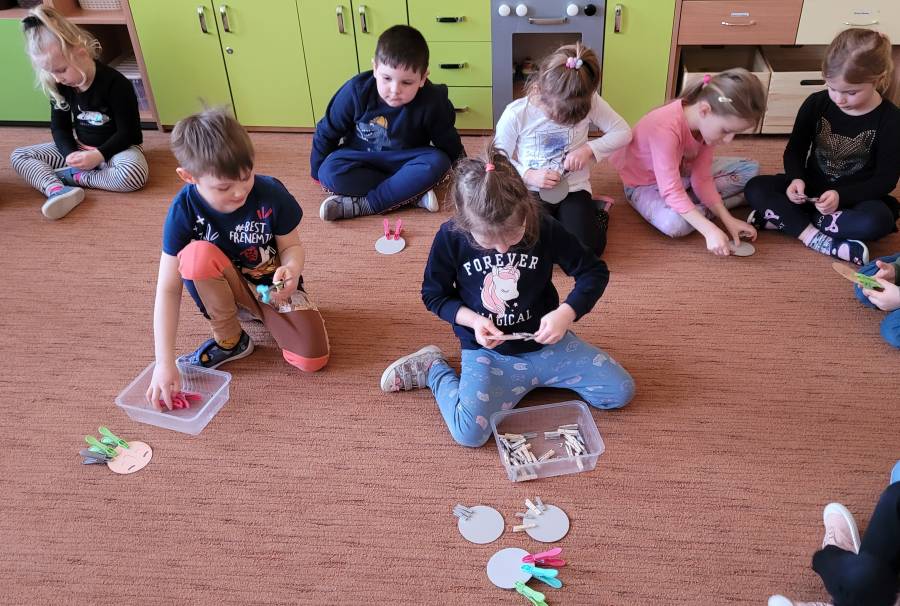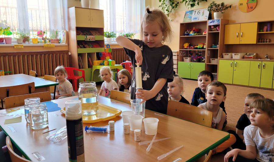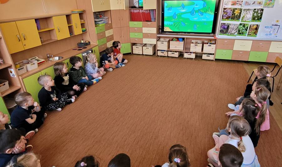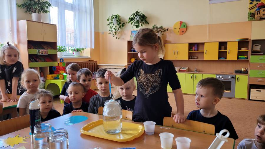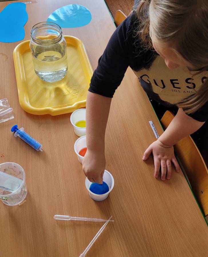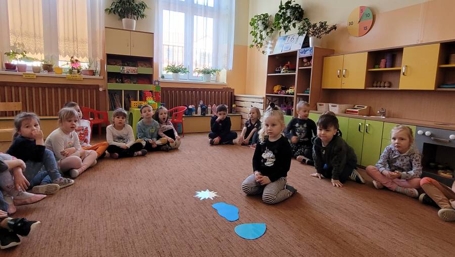 W dniu dzisiejszym grupa Misie utrwalała swoją wiedzę na temat krążenia wody w przyrodzie. Wspólnie za pomocą obrazków oraz filmu edukacyjneg próbowaliśmy odpowiedzieć na pytanie jak powstaje deszcz? Dzieci brały udział w zabawie ruchowej Kwitną kwiaty oraz doskonaliły umiejętności matematyczne - dodawania i odejmowania na konkretach. Na zakończenie zajęć wykonaliśmy doświadczenie Pada deszcz oraz obserwowaliśmy mieszanie się kolorów.