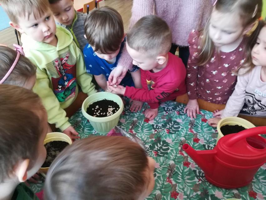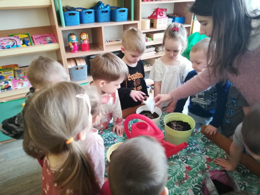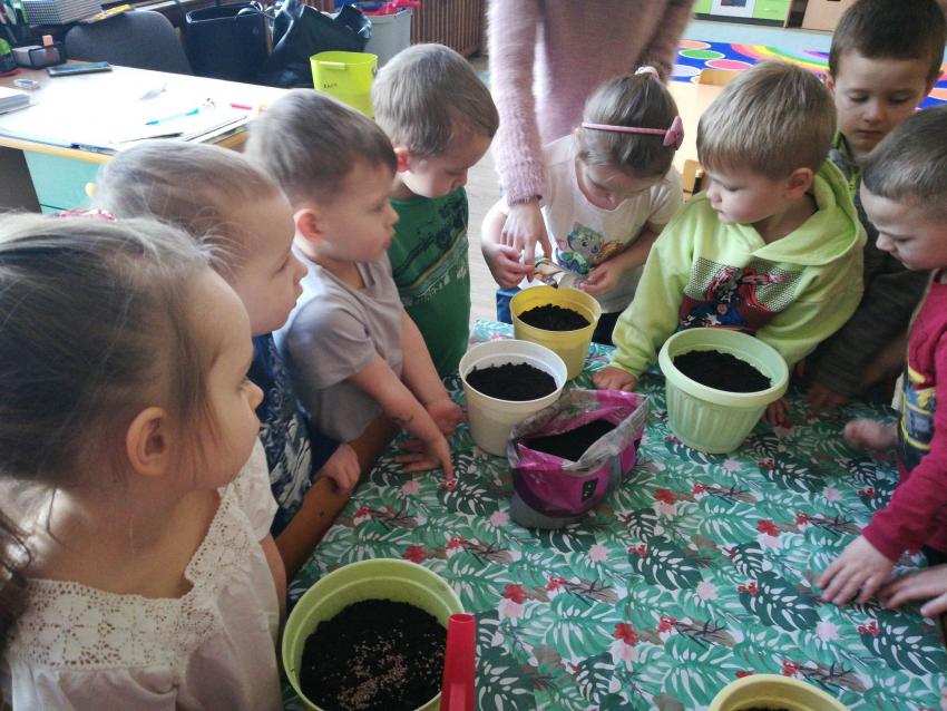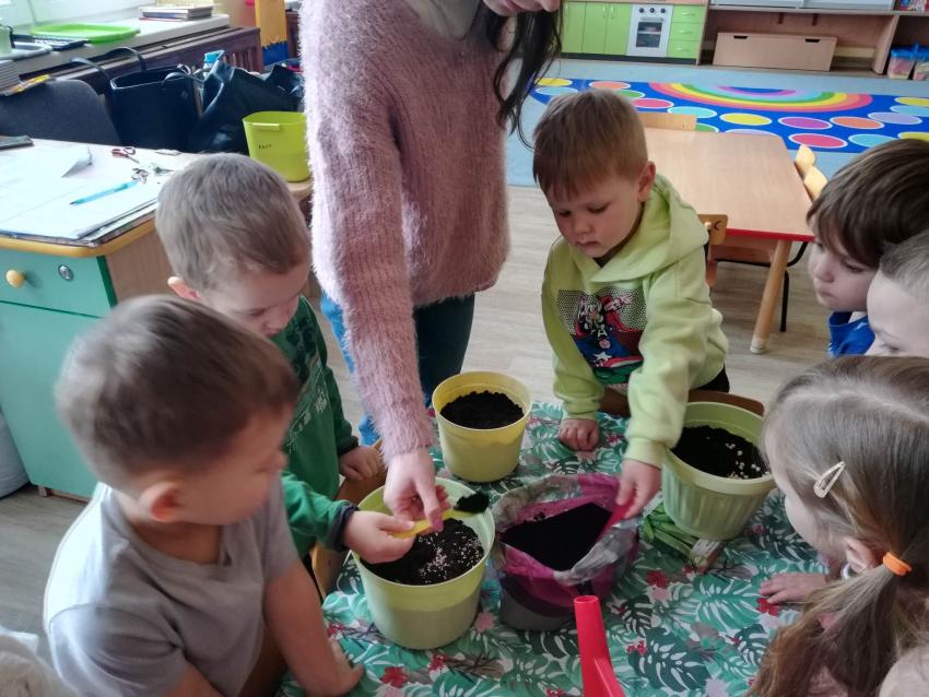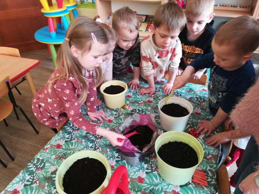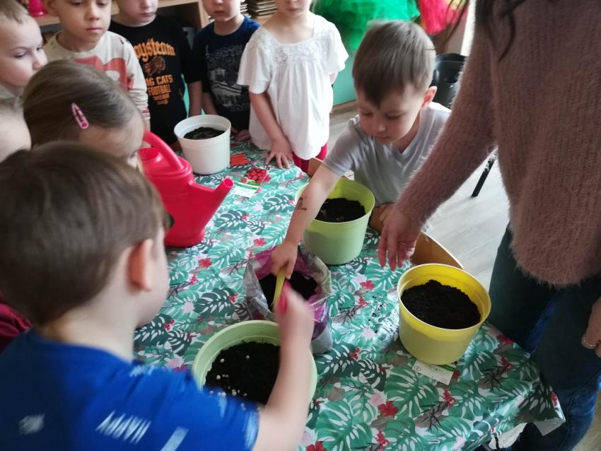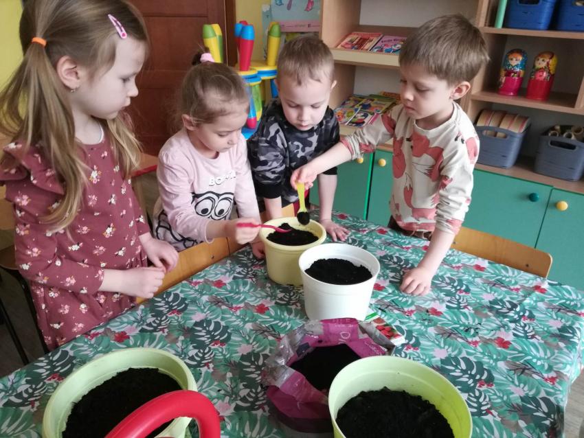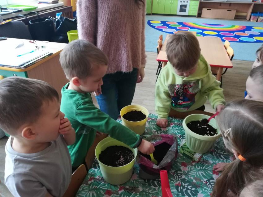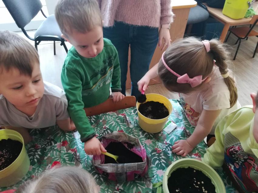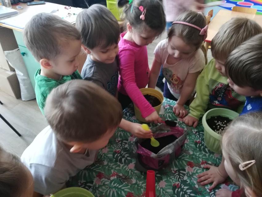 W tym dniu Żabki zakładały hodowlę roślin w sali. Będą bacznie obserwować i cierpliwie czekać na efekty podjętych, ogrodniczych działań :)