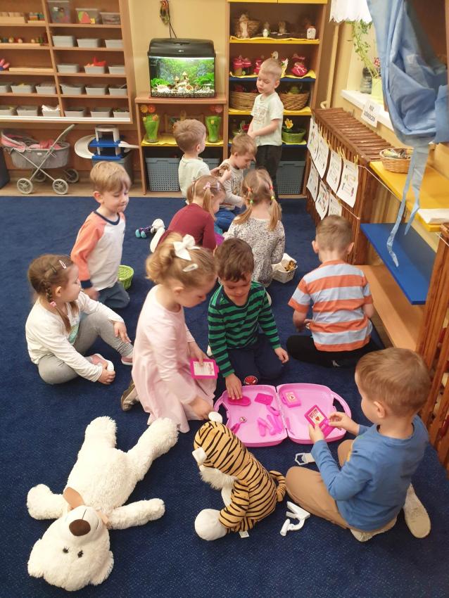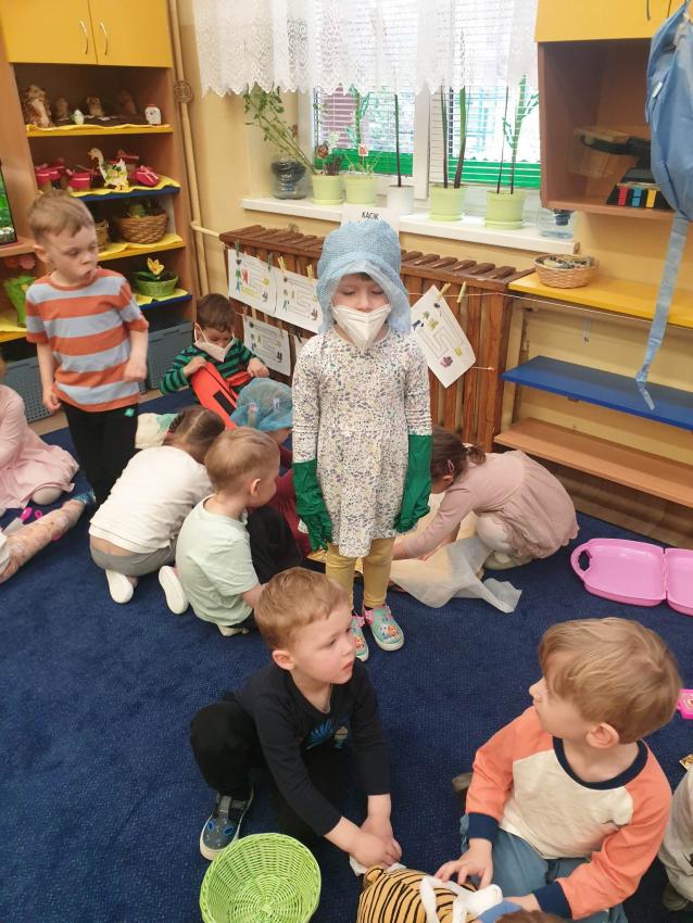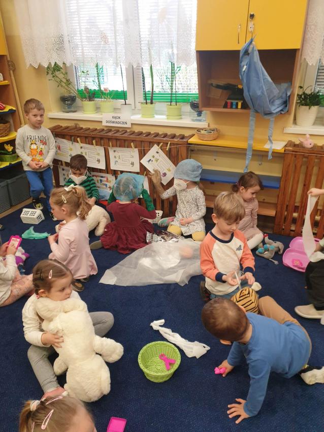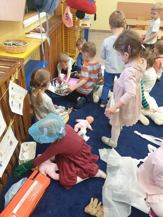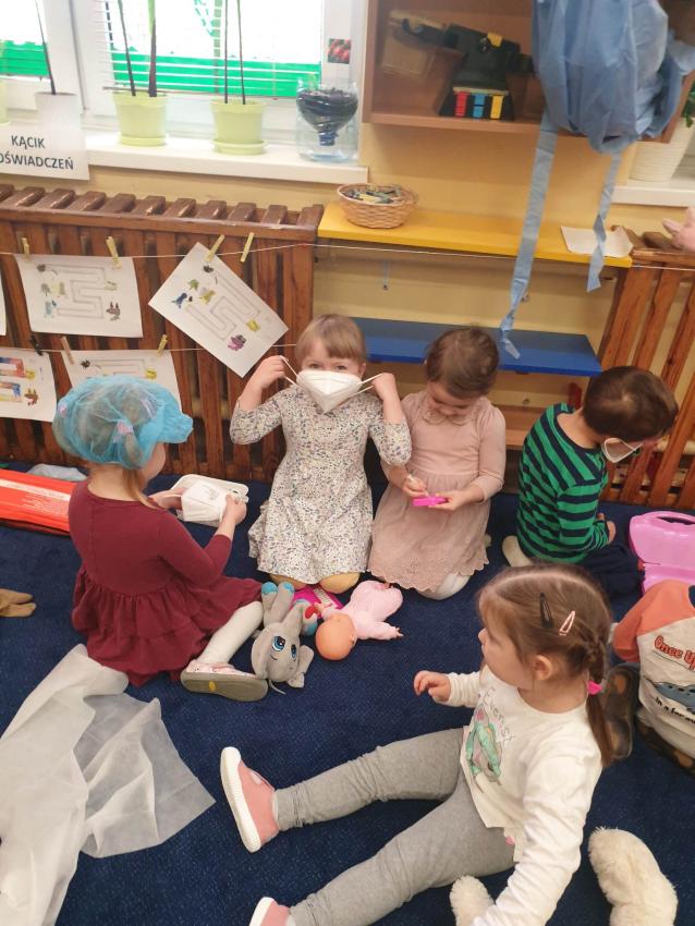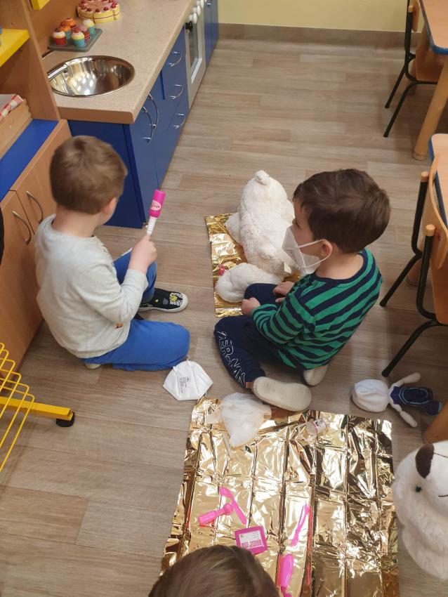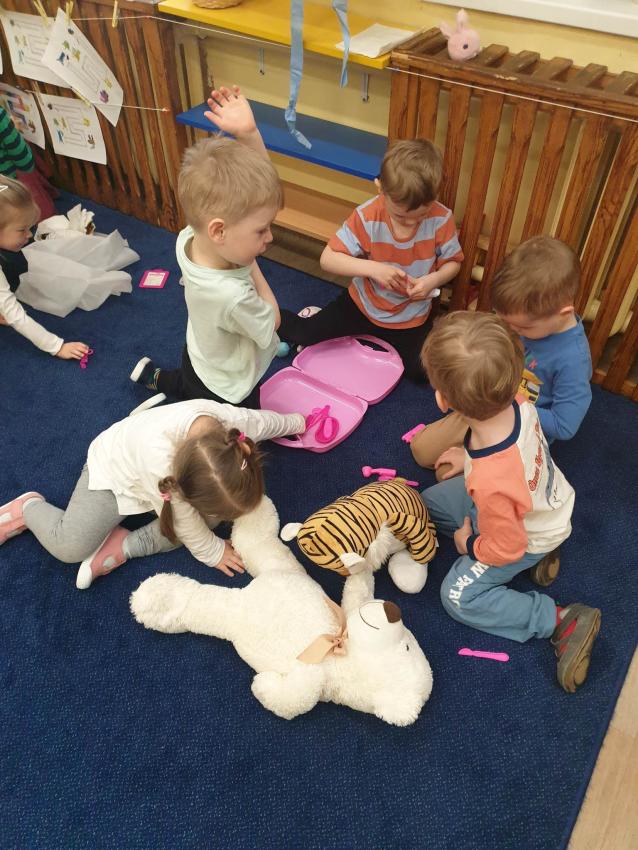 W tym tygodniu Motylki rozmawiały o pracy lekarza. Doskonale bawiły się w zorganizowanym kąciku lekarskim.