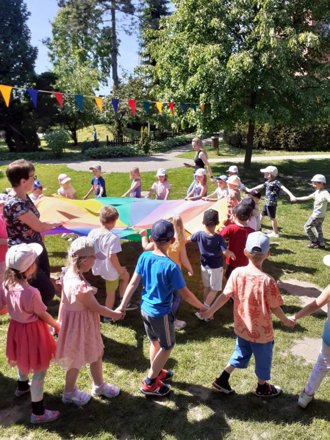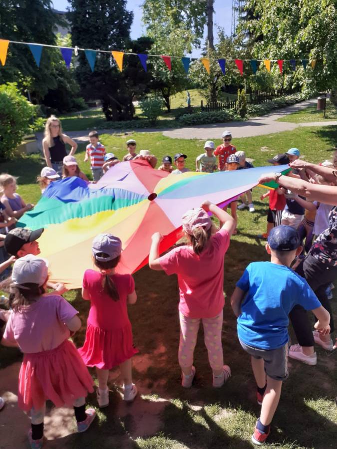 Z okazji dzisiejszego Dnia Dziecka przedszkolaki brały udział w zawodach sportowych, zabawach muzyczno - tanecznych oraz pokonywały tor przeszkód. Dzieci z radością uczesniczyly w proponowanych aktywnościach, po których w przedszkolu czekała pyszna galaretka
