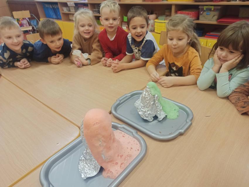 W ramach Międzynarodowego projektu edukacyjnego ?Dotknij, poczuj, zobacz? Myszki samodzielnie wykonały eksperyment badawczy pt. ?Wulkan? przy użyciu wody, octu, sody oczyszczonej oraz czerwonego barwnika. Łącząc te składniki powstał wybuchowy wulkan . Ohh cóż to były za emocje!