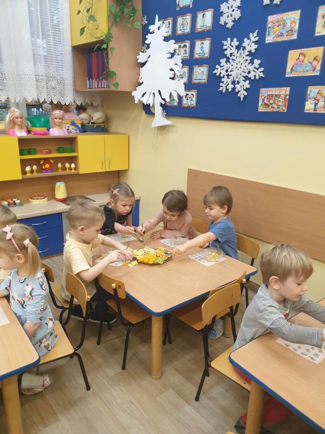 Dzisiaj w ramach zdrowego odżywiania się, Motylki samodzielnie przygotowywały sałatkę owocową. Własnoręcznie zrobiony posiłek wszystkim dzieciom bardzo smakował :)