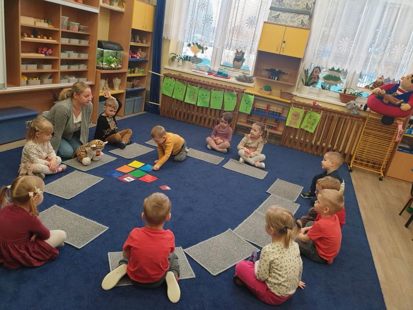 Na zajęciach matematycznych Motylki uczyły się nazywania kolorów oraz układania przedmiotów wg wielkości.