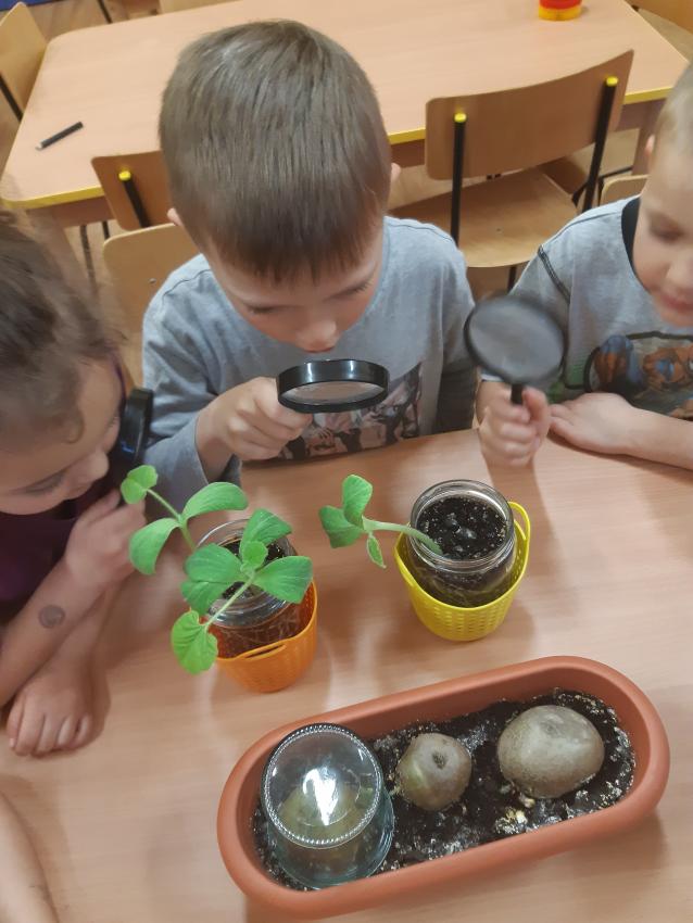 Dzieci z grypy Tygrysków założyły hodowlę roślin. Teraz obserwują zachodzące zmiany, prowadzą prace pielęgnacyjne. Roślinki piękne nam wzrastają.