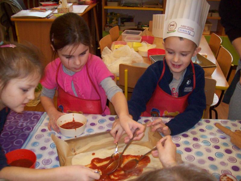 Dzieci z grupy Tygrysków dzisiaj wykonywały pizzę - okazuje się, że kucharzem każdy być może, albo prawie każdy. Było badanie konsystencji ciasta, wałkowanie i komponowanie ulubionej pizzy. potem oczekiwanie na upieczenie. cdn?