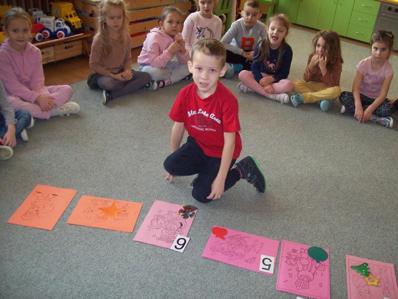 Dzieci z grupy Tygrysków doskonalą umiejętności matematyczne.