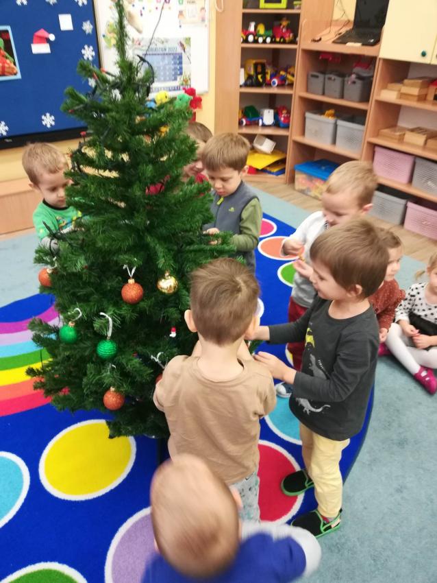 Choinka już pięknie przystrojona przez nasze Żabki :)
