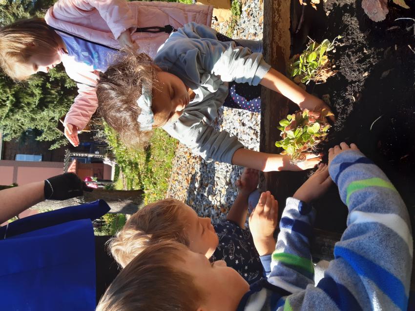 Dzisiaj Motylki zespołowo zasadziły fasolę. Uczyły się współpracy i z zaciekawieniem będą obserwować wzrost roślinek.