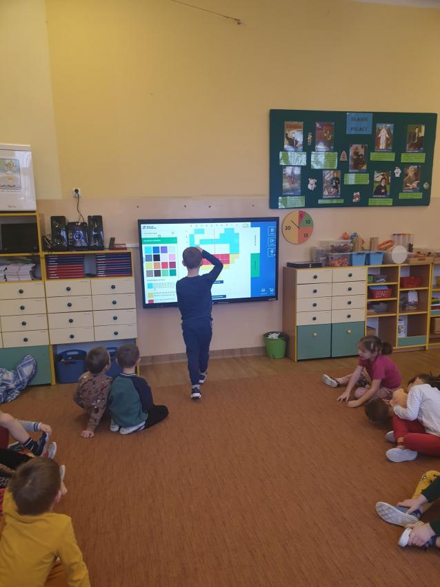 Podczas rozmów o sytuacji w Ukrainie, Motylki wykonały zadanie w ramach kodowania, wykorzystując ekran interaktywny.
