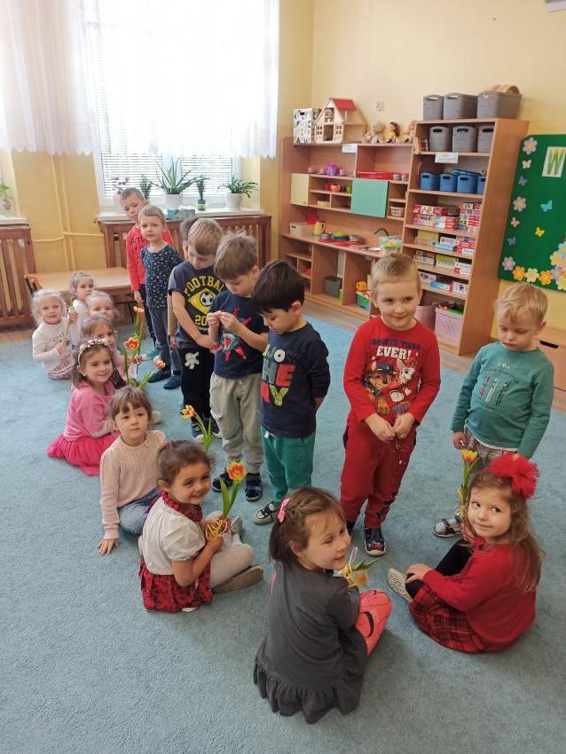 Dzień Kobiet to wyjątkowy dzień, ważny dla wszystkich kobiet, zarówno tych dużych, jak i małych. W tym szczególnym dniu chłopcy z naszej grupy złożyli wszystkim Dziewczynkom życzenia, zaśpiewali uroczyste „100 lat”, i wręczyli piękne tulipanki. Chłopcy ze szczególnym zaangażowaniem starali się, aby ten dzień uczynić wyjątkowo miłym dla swoich koleżanek i Pań.